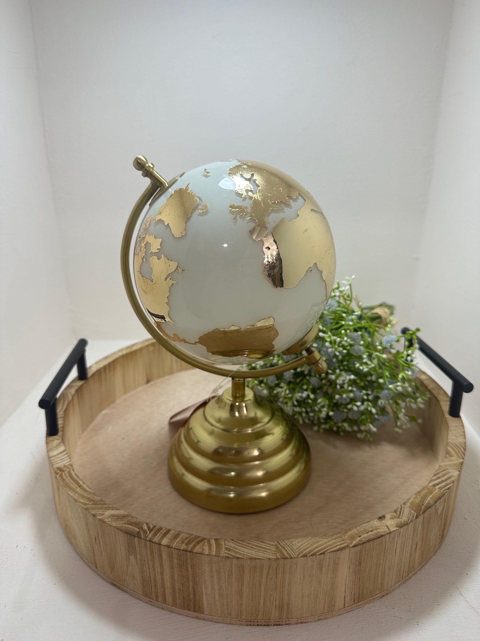 Descubre la elegancia y sofisticación del globo de cristal terráqueo en acabado dorado. Este detalle decorativo combina la delicadeza del cristal con un diseño clásico que aporta un toque de distinción a cualquier espacio, ideal para oficinas o salas. Su acabado en oro resalta los continentes de manera sutil y refinada, invitándote a inspirarte y soñar con nuevos destinos. Perfecto para quienes valoran la belleza y funcionalidad en la decoración.